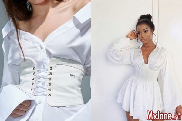 Первый способ ношения корсета — и он же самый модный из списка — это надеть его поверх простой белой рубашки или платья-рубашки. Вообще платья-рубашки изначально очень простоватые и бесформенные. Поэтому специально для тех, кто раньше считал, что платье-рубашка делает их квадратными, ношение корсета поверх него только выгодно подчеркнет вашу фигуру. А весь образ в целом сделает элегантным и модным.