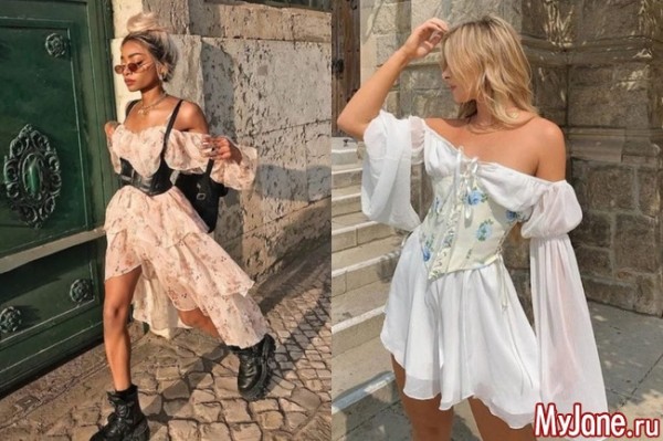 Если вы хотите придерживаться невероятно уютного стиля коттеджкор с его цветочными миди-платьями и соломенными шляпками, корсет – ваше все. Что вам действительно нужно для коттеджной эстетики, — это топ с пышными рукавами и корсет с рисунком (предпочтительно в цветочек). И все — образ «а ля прекрасная пастушка» готов.