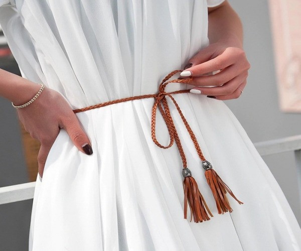 Эта деталь гардероба не новинка. Уже не однажды пояс-шнурок радовал модниц возможностью мгновенно сделать образ более элегантным. В этом сезоне пояс-шнурок на прямом платье или объемном платье-рубашке затягивают на талии не очень сильно, оставляя силуэт немного расслабленным. Концы пояса можно завязать в элегантный бантик или оставить свободными.